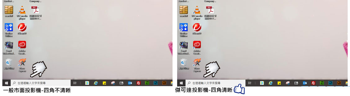 JECTOR S435U 寬螢幕超短焦互動投影機支援了Windows作業系統的觸控螢幕功能,只要連接上電腦之後,作業系統便會自動將投影機辨認為是觸控螢幕,之後便會觸發各種觸控螢幕獨有的功能,如在微軟的 office系列軟體中會自動啟動手寫功能,也能直接利用光筆在投影畫面中手寫輸入,辨識率非常的快速而且正確。