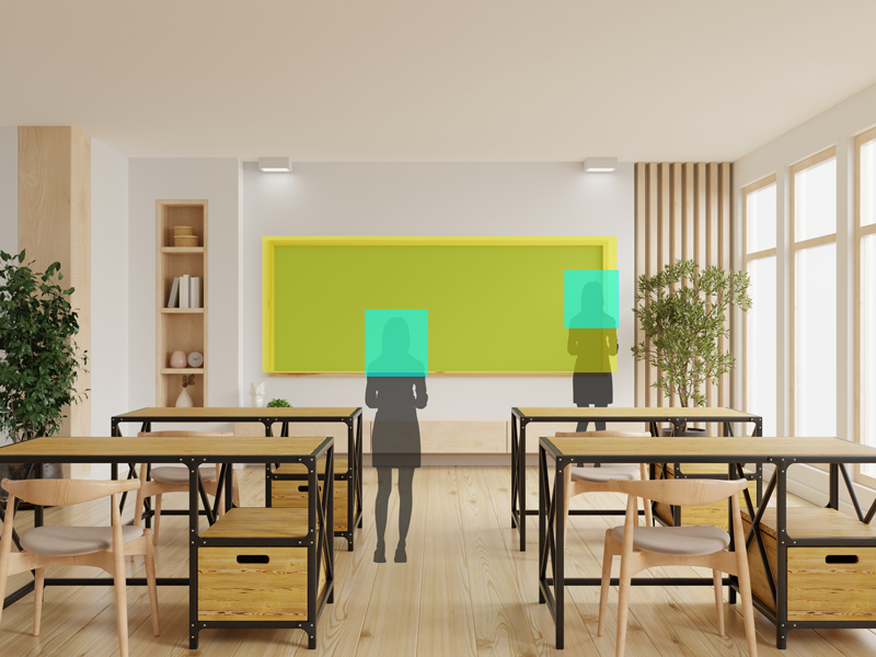 透過自動取景模式,攝影機可即時偵測所有與會者;在區域取景模式下,當演講者進入框選區域時,自動切換到該區域畫面;離開時則恢復自動取景模式。